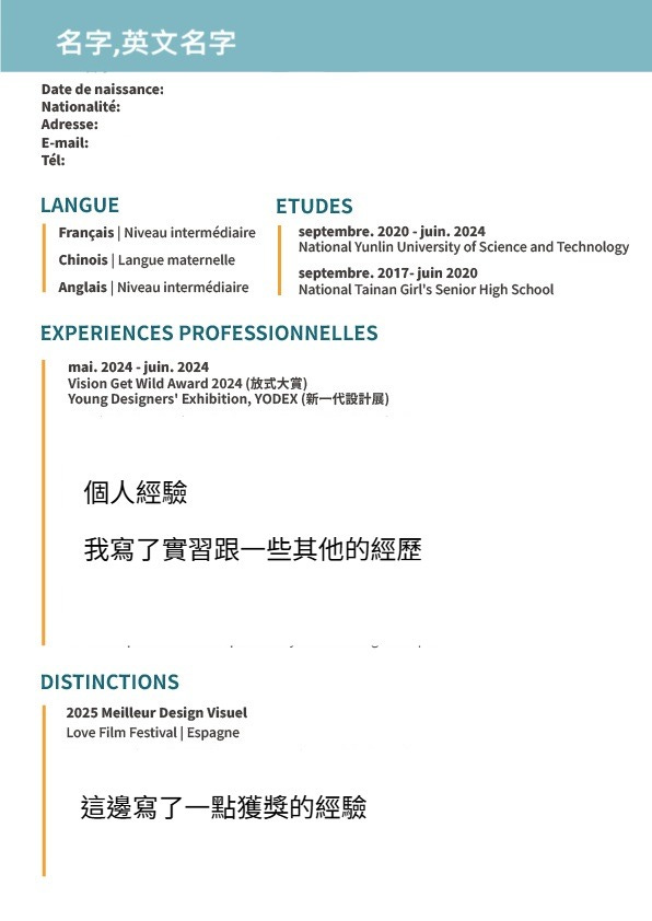 ☝️需要補齊2024/6到2025/4這段期間的活動,但因為我基本上就是只有在家學法文,所以我就沒有再另外修改☝️因為我填寫的法文程度可能讓他們覺得用法文面試會有點吃力(我沒有考過檢定,課程只上過一年)所以有說如果我想要用英文面試,可以把履歷跟動機信改成英文。